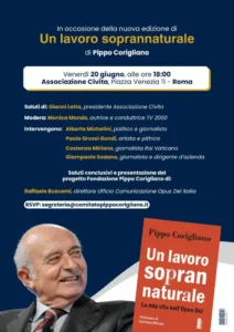 - Presentazione del libro “Un lavoro soprannaturale”A Roma, il 20 giugno 2025, in occasione del primo anniversario dalla morte di Pippo Corigliano, le edizioni Ares presentano la nuova edizione del suo primo libro:“Un lavoro soprannaturale. La mia vita nell’Opus Dei”.